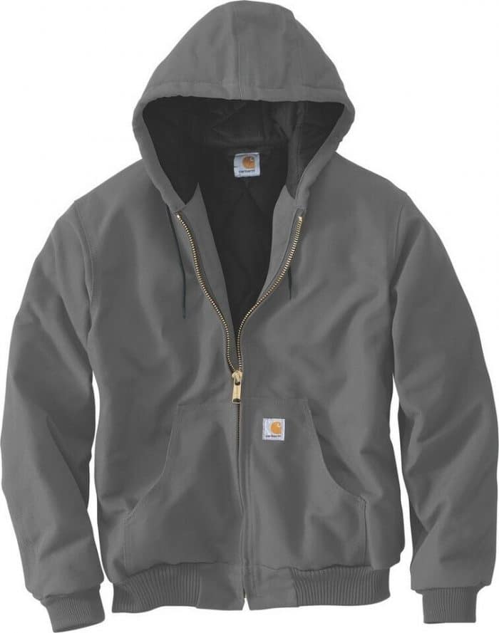 Blouson Cotton Duck anti-vent à capuche • Doublure en flanelle matelassée • Capuche 3 parties avec cordon de serrage réglable • Deux grandes poches avant • Deux poches intérieures : une avec fermeture zippée et une avec fermeture scratch • Fermeture éclair frontale sur toute la longueur • Poignets et tour de taille en bords-côtes tricot • Étiquette Carhartt® cousue sur la poche avant gauche.