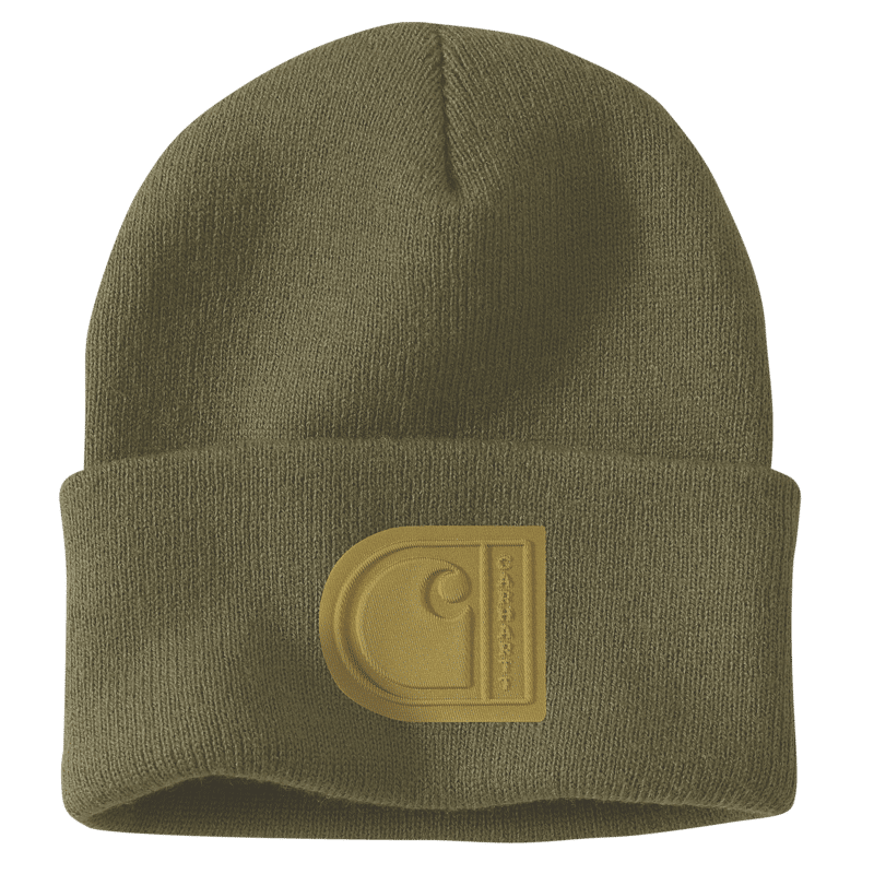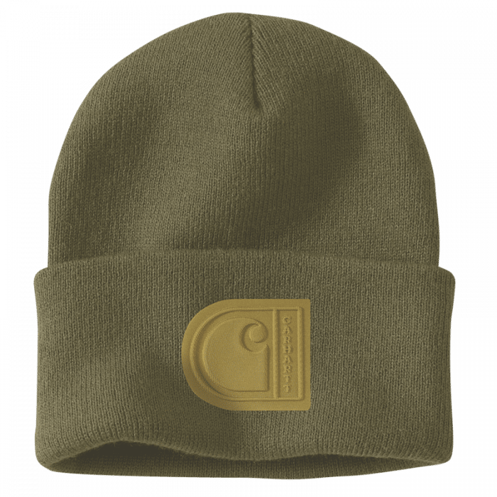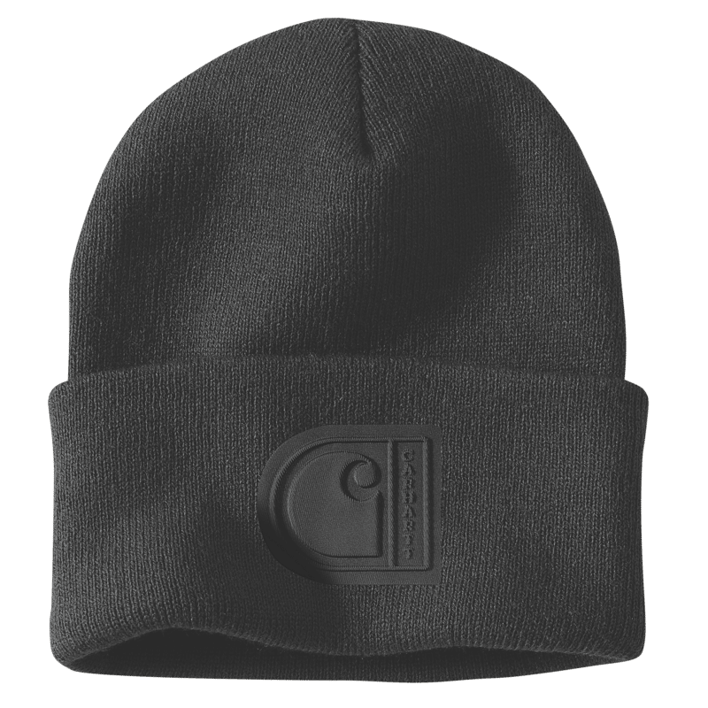 Bonnet tricoté maille double épaisseur pour plus de chaleur et de confort • Revers avec patch Carhartt® cousue.