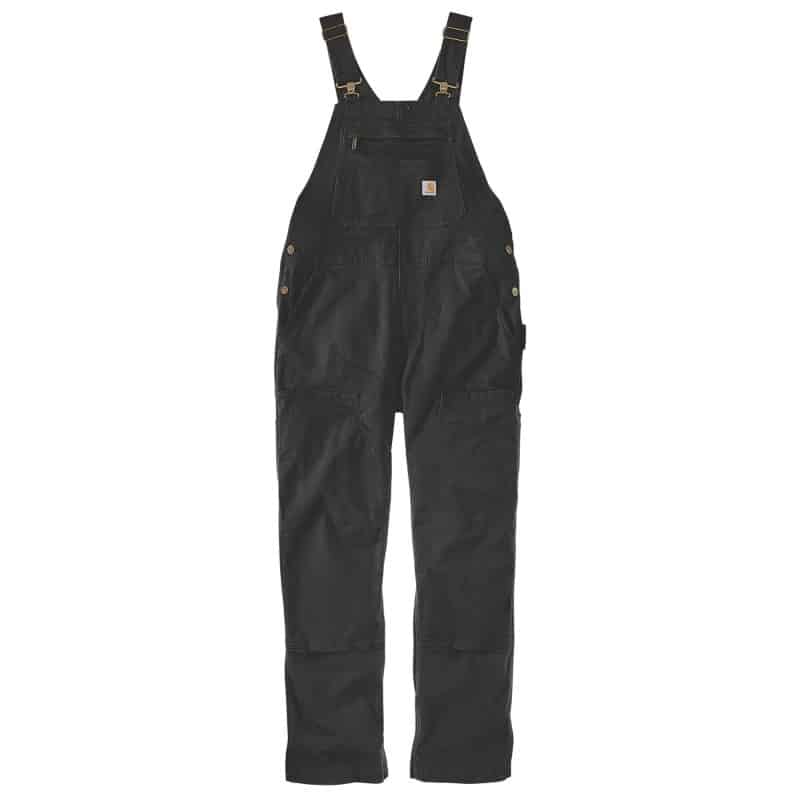 Salopette de travail traditionnelle stretch • Bretelles réglables avec boucles de réglage et attaches en laiton • Poche bavette multi-compartiments avec fermeture zip et étiquette Carhartt® cousue • Fermeture latérale par boutons laiton • 2 grandes poches avant renforcées • 2 poches arrières renforcées • Boucle marteau côté gauche • Poches outils côté droit • Doubles empiècements cuisses-genoux • Boutons, attaches, rivets et fermeture éclair YKK® laiton marqués Carhartt®.